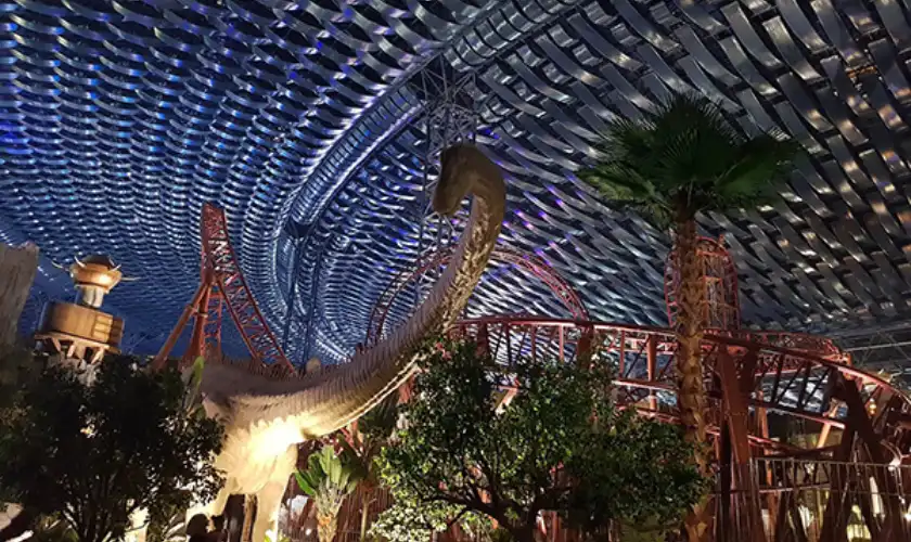 Today, you'll be driven to IMG Worlds of Adventure, the largest indoor-themed entertainment destination. Explore its six themed zones, including Marvel, Cartoon Network, and Lost Valley Dinosaur Adventure. Meet your favorite characters in the Marvel Universe and embark on thrilling rides such as Velociraptor, Predator, & the Forbidden Territory. Wander through IMG Boulevard, the park's themed retail and dining district, perfect for dining and shopping. Later, you'll be driven back to your hotel.